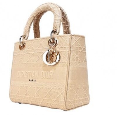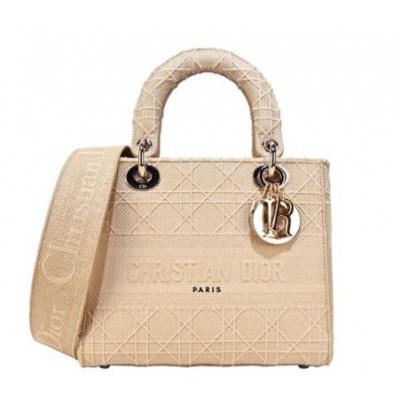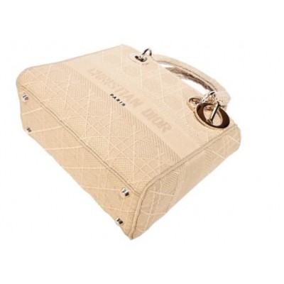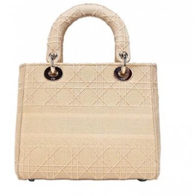 DIOR LADY D-LITE 帆布籐格紋刺繡手提斜背包