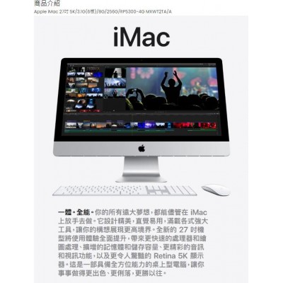 Apple iMac 27吋 5K/3.1G(6核)/8G/256G/RP5300-4G